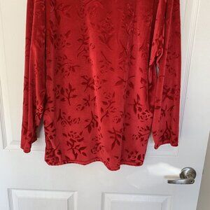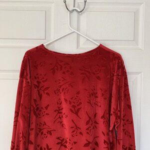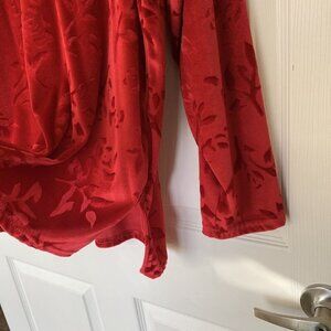 Jouly Women’s Size 1XL Red Floral Crushed Velvet Top Long Sleeve 90’s Vintage
