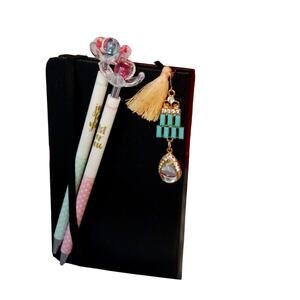 Journal GIFT SET Black Hardcover Notebook Fancy Bookmark insert Pencil Duo