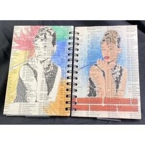 Journal Unique Audrey Hepburn Designs Handmade Upcycle Spiral Notebook Actress 100 Blank Sheets 200 Pages 6 ½ x 7 5/8