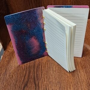Handcrafted designed glitter journal and/or notebook for your Journaling or note taking needs. Decorated beaded tassel attached can be used as a bookmark and removed.