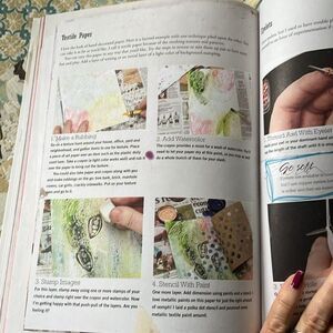 In Journal Spilling (soft back book) might just give you the right push, to learn new ways with mixed media as well as new insights about yourself for journaling. Step-by-step instruction will make the process easy and you'll explore such techniques as: