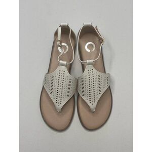 Journee Adjustable Thong Sandals 8 White Women's Boho Cushioned NEW