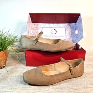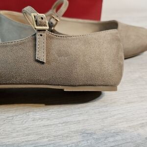 Step out in style with these elegant taupe Mary Jane flats. Perfect for any occasion, these shoes offer both comfort and sophistication.