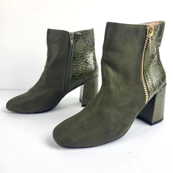 Journee Collection Faux Suede Zipper Ankle Booties Olive Green Women's Size 7