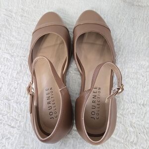 Journee Collection Flats Ankle Strap Pointed Toe Shoes Taupe Brown Size 9