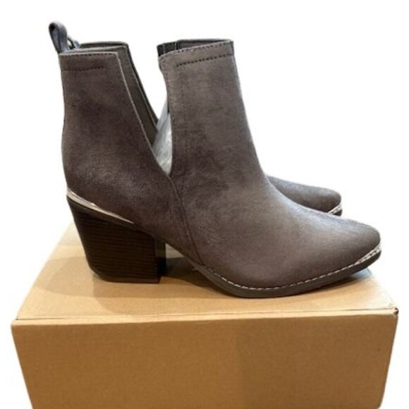 Journee Collection “Issla” Western Bootie in Grey with Silver Metal Accents – Size 8