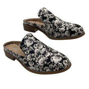 Journee Collection JC Womens 7 Black White Floral Slip On Mules Casual Office