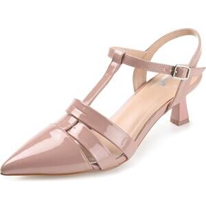 So timeless but chic, the Jazlynn heels by Journee Collection add a sophisticated finish to any look. With their T-strap silhouette, caged details, and faux patent leather, these heels are sure to catch compliments.