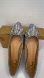 • Features: Pointed toe, layered ruffle design, metallic finish