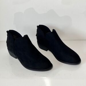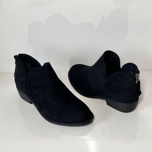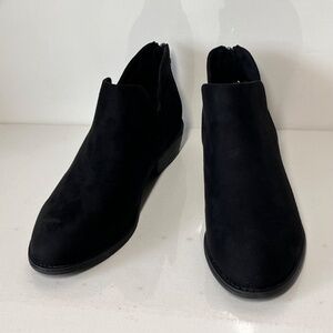 Faux suede upper Back zipper closure Round toe Synthetic lining 1½" stacked block heel Synthetic sole This shoe runs ½ size large. We recommend ordering ½ size smaller than your normal size.