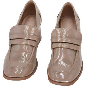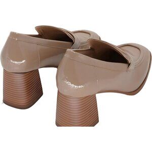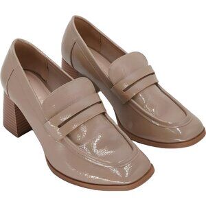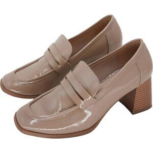 Journee Collection Malleah Patent Loafer Pumps Block Heel Taupe Women's US 9M