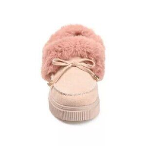 Journee Collection Midnight Faux Fur Trim Bow Tie Detail Moccasins Beige SZ 7.5