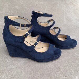 Journee Collection Navy Blue Microsuede Strappy Demi Wedges