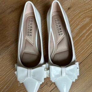 The Ophelia flat from Journee combines style and comfort with its sleek design and practical features. Crafted with faux leather uppers, these flats boast a pointed toe and a versatile 1-inch block heel. The slip-on closure, fabric lining, and 4 mm Tru Comfort Foam™ footbed make the Ophelia a chic and comfortable choice for everyday wear.