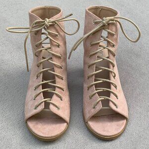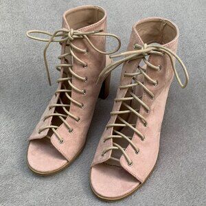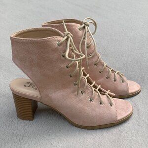 Journee Collection Posey Peeptoe Open Heel Faux Suede Lace-Up Booties Sz8