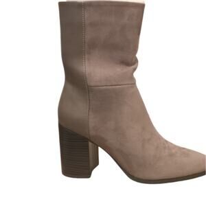 Keywords: Journee Collection Sharlie booties, taupe two-tone ankle boots, pointed toe block heel booties, new in box boots, faux leather fall boots, stylish women’s booties.