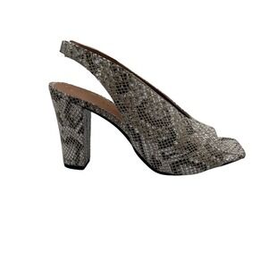 Journee Collection Shoes Women 10 Gray 100% Leather Elena Snakeskin Peep Toe NEW