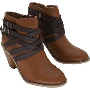 Journee Collection Tan Brown Strap Stacked Heel Booties Size 8.5W