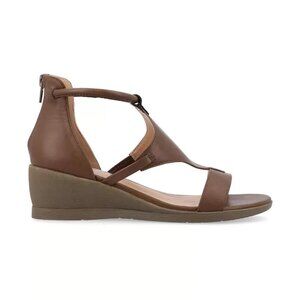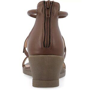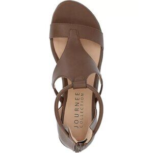 Journee Collection Trayle Wedge Sandals Brown 11 Ankle Strap Open Toe $94