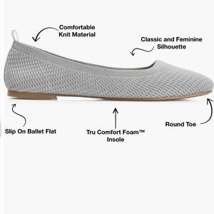 Step into comfort and style with these elegant gray ballet flats. Simple, knit ballet flats with a Tru Comfort Foam sole are perfect for a busy day on your feet.