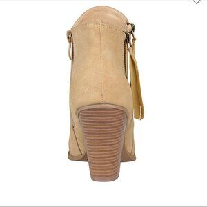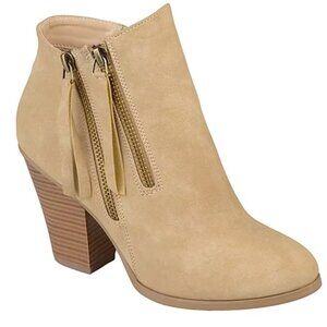 Journee Collection's vally bootie is sure to make you stand out. This wide-width bootie features vegan leather and diagonal zippers on the sides for a sleek look. This round-toe silhouette is supported by a tall block heel and a padded footbed for a comfy lift.