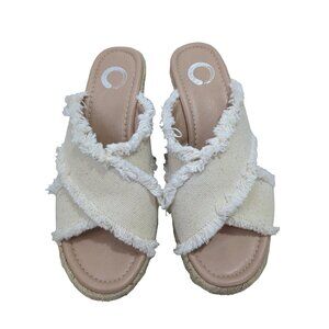 Journee Collection Wedge Sandal Womens 6 Beige Slip On Open Toe Shanni