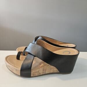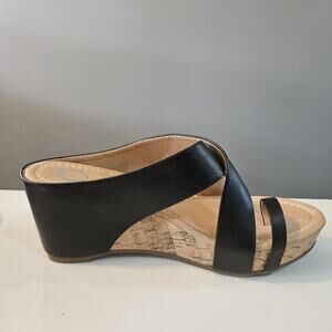 Journee Collection Women Rayna Cork Wedge Slide Sandals Size US 8.5 Black READ