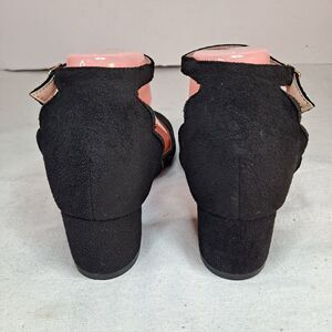The Journee Collection Women's 8.5 Edna Ankle Strap Black Scalloped Pumps with a block heel are a stylish and chic option for any woman. These solid black pumps feature a round toe, buckle closure, and ankle strap for a secure fit. The low block heel adds a touch of elegance, while the faux suede upper material ensures durability and comfort. Perfect for adding a classic touch to any outfit, these pumps are a versatile choice for any occasion.