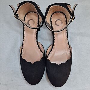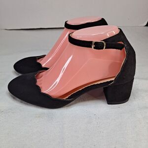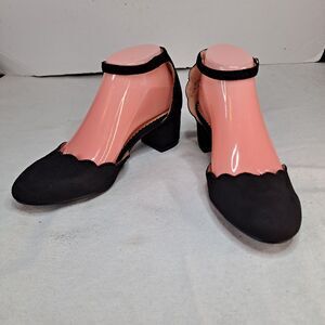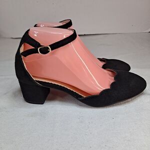 Journee Collection Women's 8.5 Edna Ankle Strap Black Scalloped Pumps Block Heel