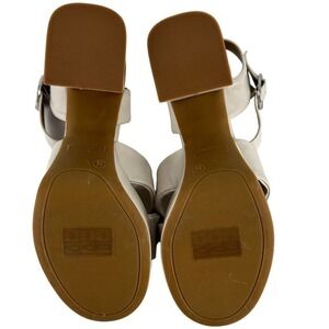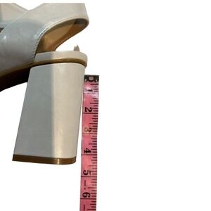 Pre-owned NOTE FLAW in photos - Journee Collection women's sandals. The strappy design with buckle closure and block heel adds a touch of elegance to any outfit. These sandals are made of durable faux leather and have padded foam accents for maximum comfort. Available in beige with a high heel height of 3-3.9 inches, these sandals are perfect for any occasion.
