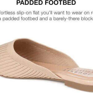 A chic and easy-to-wear mule flat that you'll want to wear over and over again, the Aniee by Journee Collection boasts a timeless design. Featuring a subtle block heel, a comfortable footbed, and a padded insole, this classic style ensures all-day comfort. The slip-on flat is completed with knit fabric uppers and an almond-toe, adding a touch of elegance to your look