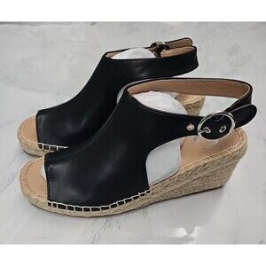 Journee Collection Womens Crew Wedge Heeled Black Espadrilles Size 6.5 NEW