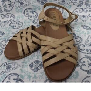 Journee Collection Womens Kimmie Faux Leather Flat Sandals Shoes Size 5.5