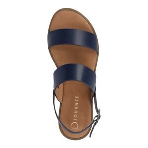 Journee Collection Women's Lavine Double Strap Flat Sandals Navy Size 10 M