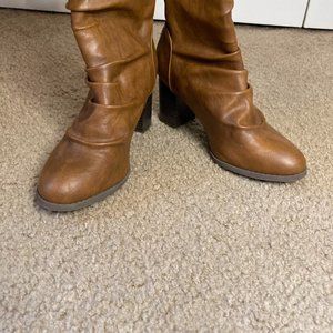 Journee Collection Women's Sequoia Stacked Heel Slouch Mid-Calf Boots Brown 7.5