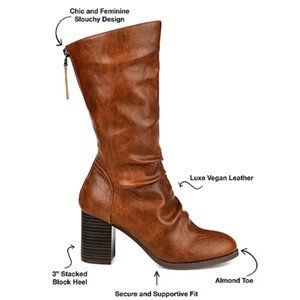 Comfort meets beauty with the Sequoia boot by Journee Collection. This boot is trending right now, so you won't want to miss out! It features a mid-calf and slouch style with a block heel. There is a zipper up the back for easy entry, and it has a memory foam comfort insole to look and feel fabulous all day!
