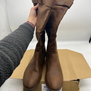 Journee Collection Womens Western Heel Booties Brown Lelanni Boots Size 11