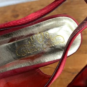 These Journee Collection stilettos are a gorgeous red wine color in satin like material, with flower like detail at the toe. NEW without tags, never worn! Size 8, thanks for looking!