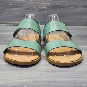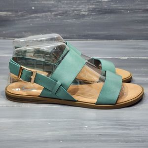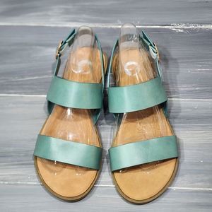 Journee Lavine Sandals Size 7 Blue Wide Strap Gold Tone Buckle Flat Cushioned
