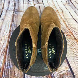 Journee Signature Women's Brown Suede Leather Heeled Ankle Boots Booties Size 7