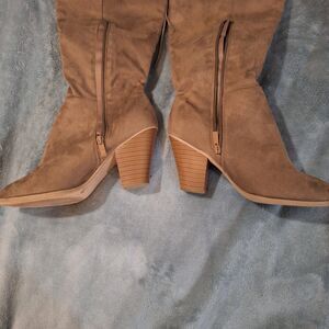 Journee Tan Over-The-Knee Heeled Boots Women 10 Suede Wide Calf