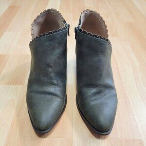Elevate your style with the Journee Collection Tessa Booties. These ankle boots are crafted from premium vegan leather, featuring a unique scalloped trim and a V-shaped topline for a chic, modern look. The almond toe design and 2.5-inch stacked heel provide both elegance and comfort, while the padded footbed ensures all-day wearability. With an easy inside zipper closure, these booties are perfect for pairing with any outfit, from casual jeans to stylish dresses.