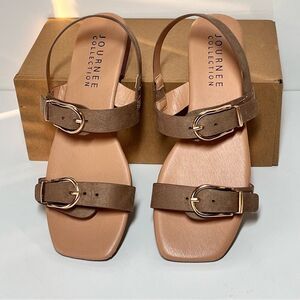 Journee Twylah Low Stacked Heel Sling Back Sandals