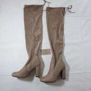 Journee Women's 8.5 Maya Thigh High Faux Suede Boots Taupe