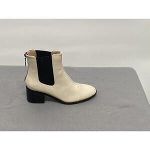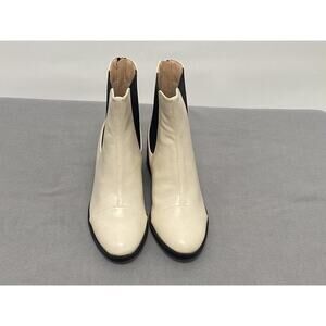 These are women's boots by Journee Collection in a bone color, featuring a solid pattern with a zipper closure. The boots have a stacked mid heel, accented with a zipper detail. The Nigella model offers Tru Comfort foam for added comfort. The size is 7.5 and the boots are designed for casual wear during the winter season.