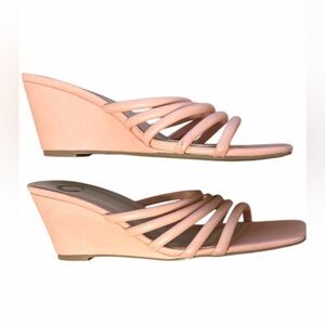 Journee strappy wrap sandal new never worn. Salmon color with 3" wedge heel and square toe, size 8.5.