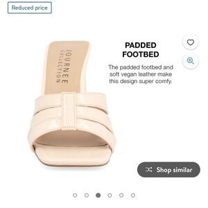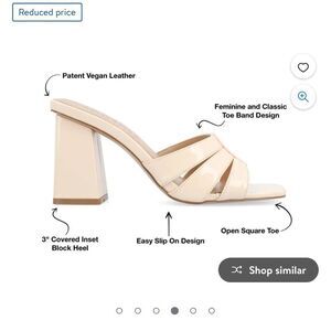Our Ellington block heeled sandals from Journee Collection will take you from event to event in style. This style is sure to boost your confidence with their patent vegan leather, stacked band design, and open square toe. The padded insole and slip-on feature will leave your feet feeling more comfortable than ever.