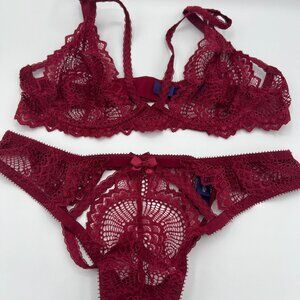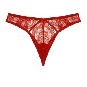 Journelle Lace Natalia Demi Bras size: Medium & Natalia String Thong with ouvert cutout, size: Small. Color: scarlet. Excellent condition.