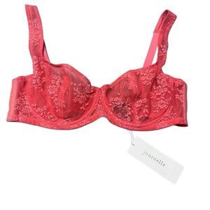 Journelle Romy Floral Demi Bra Womens 34 C Hibiscus Sheer Hook & Eye Closure NWT