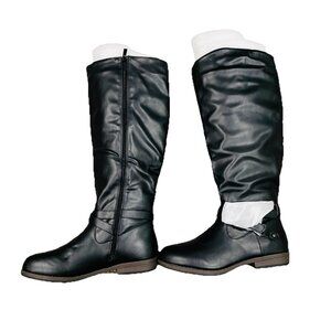 Journey Collection Tall Boots Womens Size 10 Black Knee High Zip Heeled Buckle